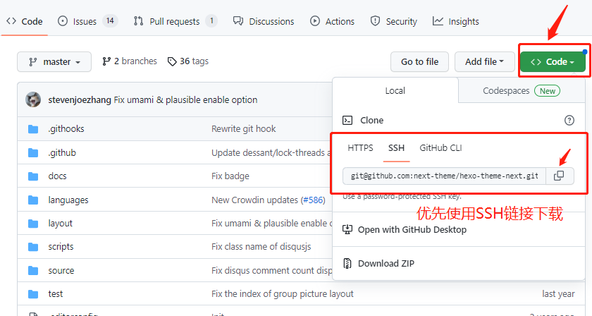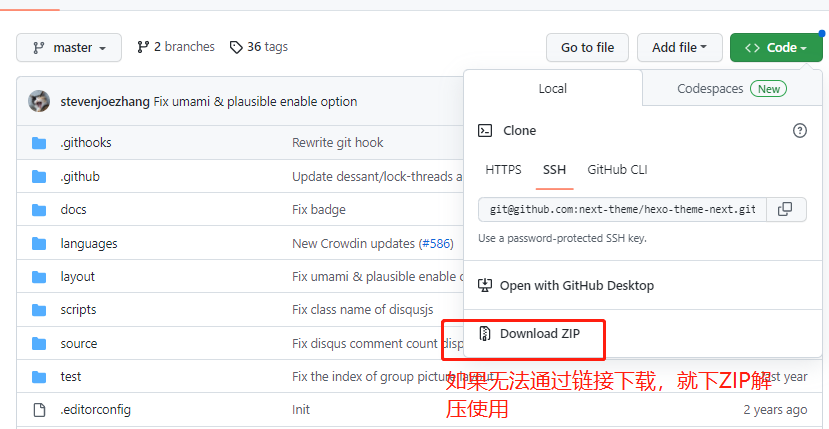 如果你一直无法通过 Git bash 克隆主题 你可以选择 Clone or download 下的 Download ZIP