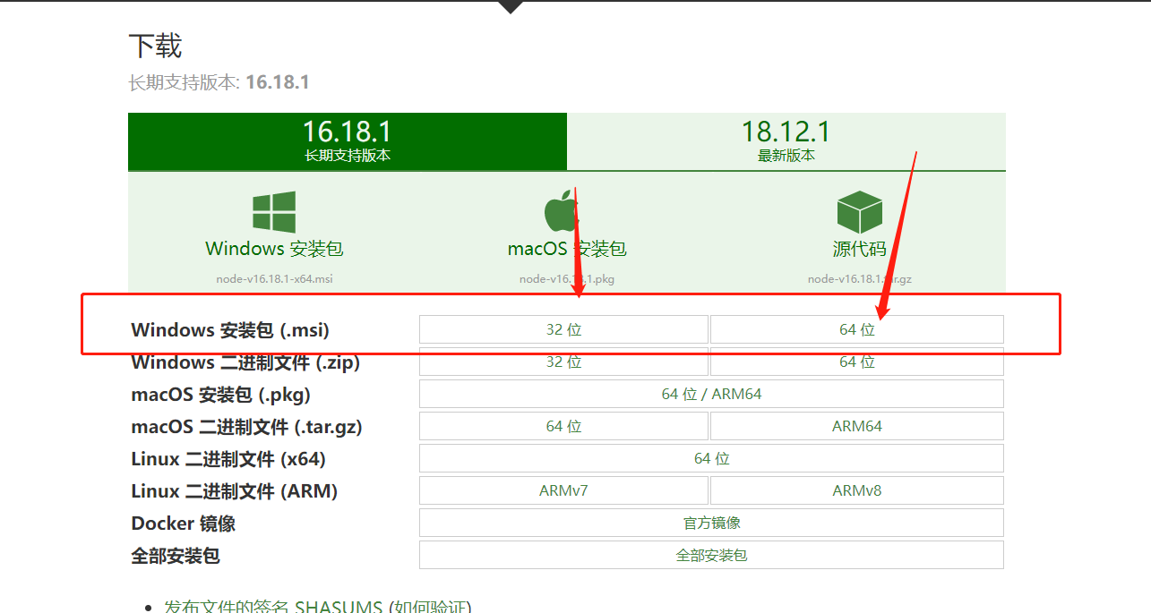 1、安装 node.js 的安装包根据自己搭建环境。(这边展示为 windows)