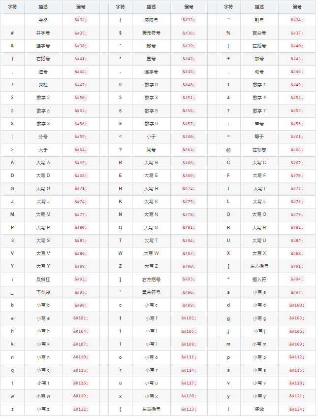 本章记录 HTML ASCII 表,参考搜索